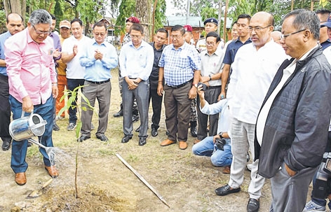Pushing the recently launched CM’s Green Manipur Mission forward, Chief Minister N Biren Singh today led a mass tree plantation drive inside Kangla. Around 700 indigenous fruit bearing tree saplings were planted during the drive organised by Kangla Board in association with Department of Art and Culture, Department of Forest and Directorate of Environment.