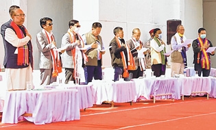 Chief Minister N Biren Singh led the leaders and representatives of 33 different communities in taking a collective pledge to work together towards complete destruction of illegal poppy cultivation and checking illicit drug businesses.