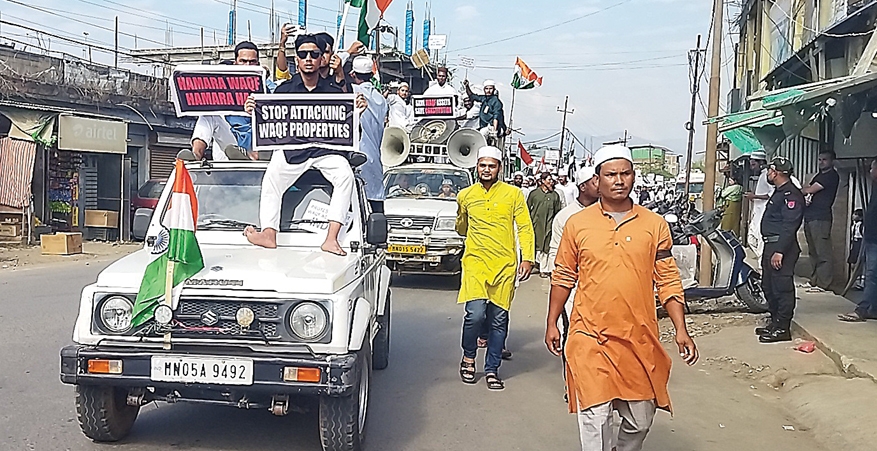 THOUBAL, Apr 15: People in thousands staged protest rallies against the recently amended Waqf Act at several places across Thoubal and Mayang Imphal.