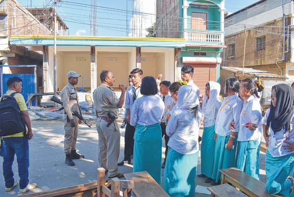 IMPHAL, Oct 17: Demanding adequate teachers, students of Ananda Singh Higher Secondary Academy blocked road and staged sit-in in front of the school gate today.