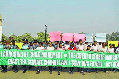 “There is no Planet B,” read a sign hoisted by a young girl in India Gate.