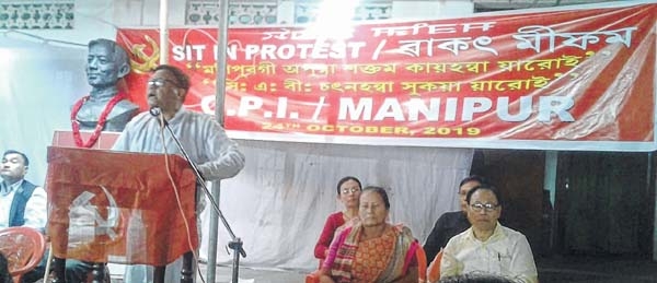 Speaking at the sit-in protest, CPI State secretary L Sotinkumar decried that the BJP-led Government has been paying no heed to the proposal to convene a special session of the State Assembly to discuss the growing apprehension among the people of Manipur that the State’s integrity may be compromised. Even as the people of Manipur have been protesting vociferously against the CAB and any attempt to disintegrate the State, the BJP-led State Government has the audacity to misinform the Central Government by sending false reports that there is no public outcry against the Framework Agreement and the CAB, Sotinkumar said.