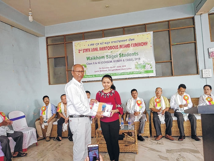 IMPHAL, Jun 22: Waikhom Apokpa Tengbang Lup on Saturday feted meritorious students of the Sagei (Waikhom) who have excelled in the Class X and XII examinations conducted by BOSEM, COHSEM and CBSE etc.