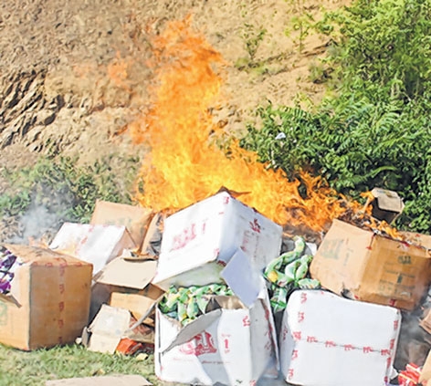 Speaking to media persons after setting ablaze the expired goods, KSA youth affairs and sports secretary Sanjay Khullakpam said that KSA is deeply concerned with the deliberate supply of several expired goods to Imphal.