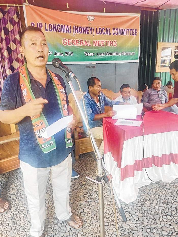 Noney, Jun 24: Longmai (Noney) Circle Booth Level Committee under the aegis of Nungba Mandal held a meeting at Longmai (Noney) village today which was presided by Gailung Gangmei in presence of Gailanjei Pamei, president, Nungba Mandal; gen secy Poudinlung Riamei; president ST-Morcha, Manipur, Michael Dangmei; gen secy, BJP Tamenglong District, Joyson Kamei; president ST-Morcha, Tml, Ading Gonmei.