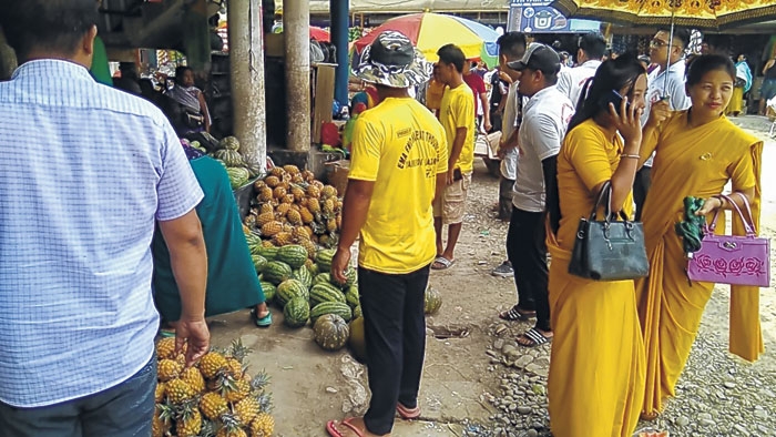 THOUBAL,June 25 : Yairipok Municipal Council along with Ema Emoinu Erat Thouni Lup, Yairipok Bazar and Yairipok police Tuesday removed vendors encroaching on footpaths in Yairipok bazar areas.