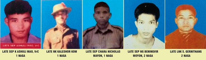 The five Manipuri soldiers were Sepoy K Ashuli Mao of the Naga Regiment, who was posthumously awarded the Vir Chakra. The other four soldiers were Sepoy Chara Nicholas, Naik Kaleshwor, Ng Beningvir Moyon and Sepoy LNK S Germinthang.