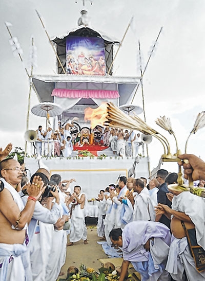 CM Biren, his wife N Hiyainu, Education Minister Th Radheshyam and MLA Rajen and others attended the religious ceremonies at the temple apart from taking part in Kang Chingba. The CM and the Ministers/MLAs also took part in the Rath Yatra celebration at ISKCON.