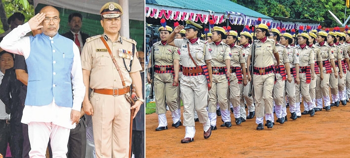 Assistant Director of Manipur Police Training College (MPTC) Sarangthem Asana was the parade commander. Nine band platoons of different security forces, Home Guards and Sainik School also took part in the colourful march past.