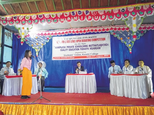 Bishnupur, Aug 18: Students Union of Kumbi College has organized the 2nd State Level Open Debating Competition on the topic “Abolish Private School to bring Quality Education in Manipur” at the College hall today which saw participation from 29 students from various schools and colleges of Manipur.
