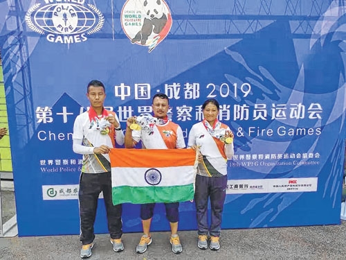 IMPHAL, Aug 18 Three archers of Assam Rifles Archery team trained by 9 Sector Assam Rifles under the aegis of HQ IGAR (South) collected a rich haul of five gold, three silver and one bronze medals at the World Police and Fire Games held in Chengdu, China from 9 to 18 August 2019. Two male archers, Rifleman G Robert Sharma, who hails from Manipur, clinched three gold medals in the Compound bow archery events while Rifleman Z Demo, a resident of Nagaland, bagged one gold, one Silver and one bronze medals in the Wooden bow events. Mahila Rifleman SP Lydia, who also hails from Manipur, won one gold and two silver medals in the women's category in the Wooden bow events. Rifleman G Robert Sharma had earlier won three gold medals in the previous World Police and Fire Games at Los Angeles in 2017, while the other two archers were participating for the first time at international level. Each archer could participate in only three archery events at the World Police and Fire Games. The three archers participated in the Bare Target, Field Archery and 3 D Archery events winning medals in each of the three events they participated in. A reception and felicitation ceremony is being planned for the archers on their return to Imphal, said a press release of IGAR (S).
