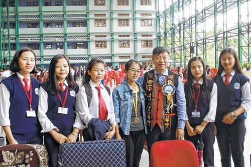Lorho Pfoze gives pep talk to students at DBC Maram