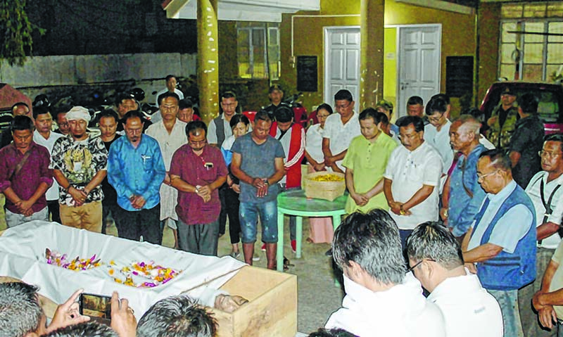 On the other hand, media community, led by IPR Minister Th Biswajit, paid floral tributes to the mortal remains of Santosh at Manipur Press Club this evening