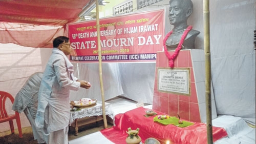 IMPHAL, Sep 26: 68th death anniversary of Lamyanba Hijam Irawat (State Mourn Day 2019) was celebrated at Irawat Bhawan Thursday with the gathering including many veteran CPI leaders paying tribute to the statue of the leader.