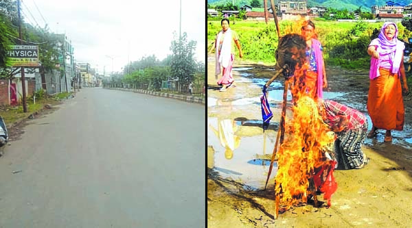 In the afternoon, effigies of Chief Minister N Biren Singh and Principal Standard Robarth Hr Sec School Ph Landhoni, were burned by bandh supporters along Imphal-Ukhrul road. Bandh supporters also disturbed vehicle movement at Lamlong, JNIMS road, Khurai Ahongei etc.