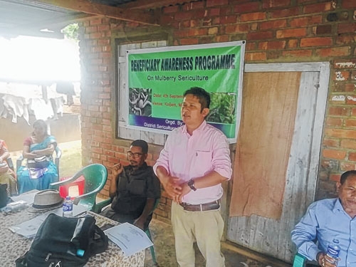 The awareness programme organised by District Sericulture Officer, Chandel was attended by staff of District Sericulture Office while about 50 beneficiaries from Koijam, Langol, Khunbi, Khunbi Tuinem and Khunbi Tuisen village were also present.