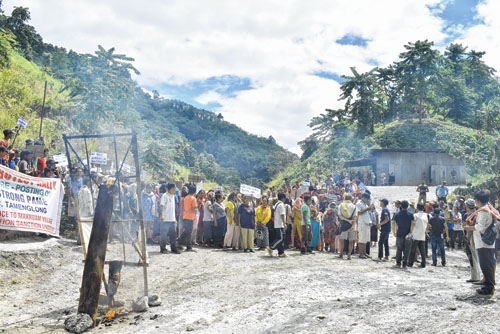 IMPHAL, Sep 7: Strongly condemning reposting of Armstrong Pame as Deputy Commissioner of Tamenglong district, the Makhuam Village Authority and Thoubei organised a mass protest rally and banned NF Railway construction works for three days from September 7. The protesters during the rally today burnt effigy of the DC.