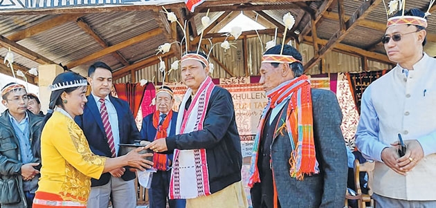 During the function, the village elders presented a traditional blessing song dedicated to the MP who also is the titular king of Manipur.