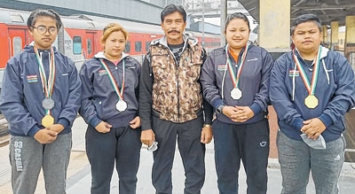 State women strength lifting team brought home 5 medals from the 31st National Strength Lifting and Inclined Bench Press Championships 2021-22 held in Alwar, Rajasthan from December 29, 2021 to January 2 last.