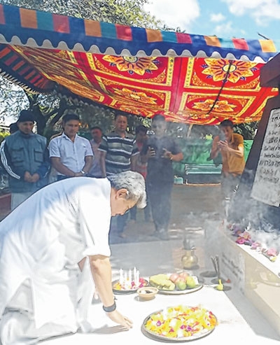 Keishamthong AC MLA Nishikant Sapam led the people in paying floral tribute to the statue of Lamyanba Hijam Irabot at Pishum Oinam Leikai. A one minute silence was also observed in his honour.