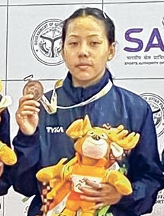 IMPHAL, May 31 : S Chingkheinganbi Chanu has won Manipur University a bronze medal in the individual epee event (fencing) at the 3rd edition of Khelo India Inter University Games being underway in Uttar Pradesh.