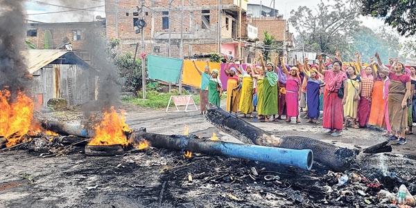 Womenfolk of Kwakeithel Thounaojam Leikai also came out in large number and blocked one lane of Tiddim Road portion by hanging phaneks in support of the bandh. Speaking to this reporter, one woman condemned the arrest of the village defence volunteers and questioned as to why the Government remain silent when Kuki narco-terrorists carry out offensives and openly extort money on the highways.