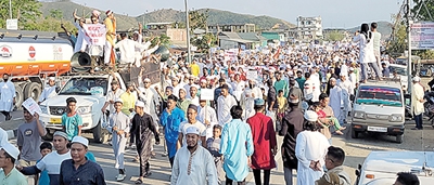 Thoubal, Apr 12 : A massive rally was taken out in Lilong today under the banner "Kala Kanoon Wapas Lo, Protect Waqf Properties, Protect Muslim Right."