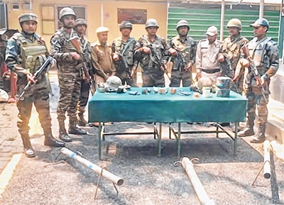 Acting on intelligence inputs suggesting the presence of armed insurgents attempting to establish a foothold in Manipur, security personnel conducted a targeted search using a metal-detecting sniffing dog. The operation resulted in the seizure of a large quantity of weapons and explosive materials.